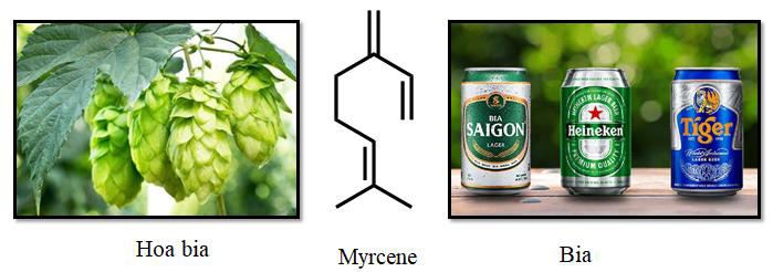 - Dựa vào công thức cấu tạo của myrcene thấy chất này không có chứa vòng benzene và khung carbon của myrcene được hình thành từ 2 phân tử isoprene nên myrcene không thể là hydrocarbon thơm.