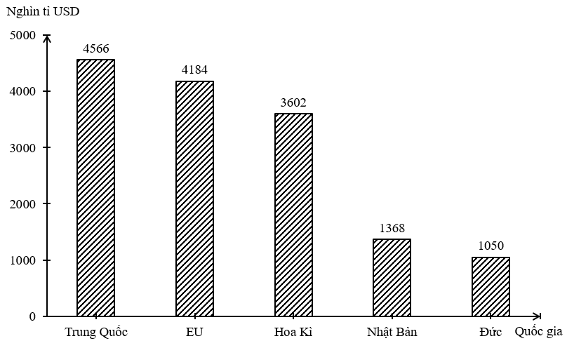 Quy mô sản lượng công nghiệp của một số quốc gia đứng đầu thế giới năm 2019.