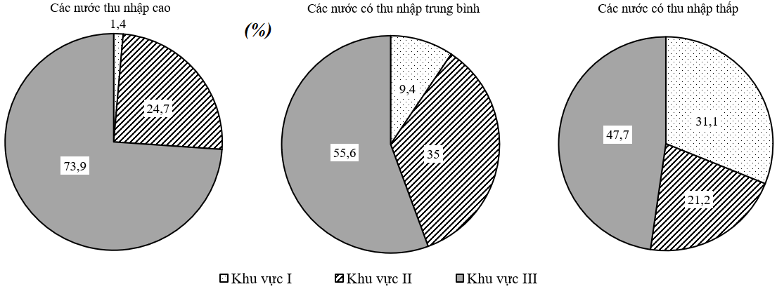 Cơ cấu GDP của các nhóm nước theo khu vực kinh tế năm 2020.