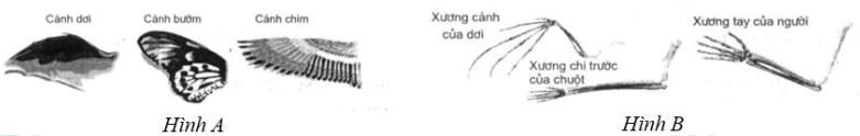 Dùng thông tin sau để trả lời 2 câu hỏi tiếp theo: Hình bên dưới minh họa sự khác biệt giữa cơ quan tương đồng và cơ quan tương tự, qua đó làm rõ cách tiến hóa định hình cấu trúc và chức năng của các loài để thích nghi với môi trường sống.