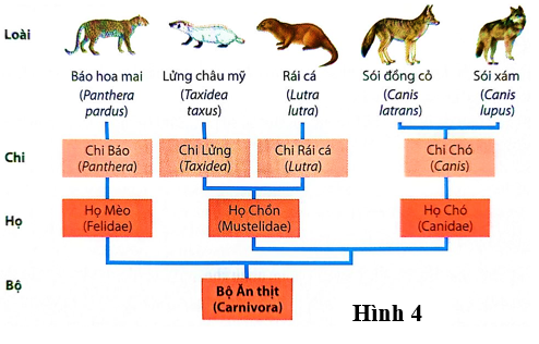 Sử dụng dữ kiện sau để trả lời 2 câu tiếp theo: Hình 4 mô tả cây phát sinh chủng loại của của bộ ăn thịt (Carnivora)