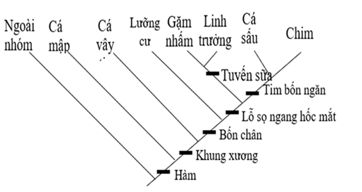 Dùng thông tin sau để trả lời 2 câu tiếp theo: Hình 3 thể hiện sự phát sinh chủng loại của một số loài thuộc ngành động vật có xương sống