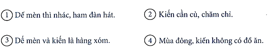 Dế mèn và kiến là hàng xóm. Kiến thì cần cù, chăm chỉ, làm từ tờ mờ sớm đến đêm. Dế mèn thì nhác, chỉ ham đàn hát.