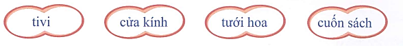 thước kẻ, cuốn truyện, đọc sách, tưới cây, cốc nước, ti vi, nghe nhạc, vẽ tranh.