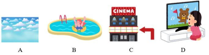 Thông tin: “She goes to the swimming pool.” → Hình ảnh B là một cô gái đang ở bể bơi → Điền B vào câu hỏi số 6.