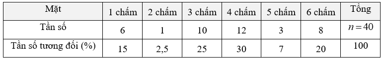 Giá trị mặt 4 chấm sai tần số tương đối, sửa lại: 30,5%.