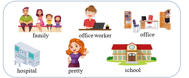 My name is Peter. I’m nine years old. This is a photo of my (1) ________. My dad is thirty-five. He is a doctor; he works in a big (2) ________. My mom is pretty. She’s a teacher. My uncle also lives with us. He is a farmer. His wife – Aunt Suzy is an (3) ________. She works in an (4) ________ in Ho Chi Minh City. Sometimes she takes me to her office. I often go to (5) ________ with my uncle and aunt. I love my family.