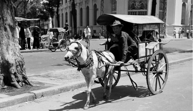 Chiếc xe cùng con ngựa Cú của anh Hoàng đưa tôi từ chợ quận trở về. Anh là con của chú Tư Khởi, người cùng xóm, nhà ở đầu cầu sắt. Nhà anh có hai con ngựa, con Ô với con Cú. Con Ô cao lớn, chạy buổi sáng chở được nhiều khách và khi cần vượt qua xe khác để đón khách, anh chỉ ra roi đánh gió một cái tróc là nó chồm lên, cất cao bốn vó, sải dài, và khi tiếng kèn anh bóp tò te tò te, thì nó qua mặt chiếc trước rồi. Còn con Cú, nhỏ hơn, vừa thấp lại vừa ngắn, lông vàng như lửa. Nó chạy buổi chiều, ít khách, nó sải thua con Ô, nhưng nước chạy kiệu rất bền. Cái tiếng vó của nó gõ xuống mặt đường lóc cóc, đều đều thiệt dễ thương. Tôi thích nó hơn con Ô, vì tôi có thể trèo lên lưng nó mà nó không đá. Mỗi lần về thăm nhà, tôi thường đi xe của anh. Anh cho tôi đi nhờ, không lấy tiền. Thỉnh thoảng đến những đoạn đường vắng, anh trao cả dây cương cho tôi... Cầm được dây cương, giựt giựt cho nó chồm lên, thú lắm.
