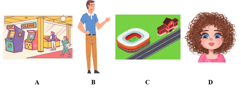 → Hình ảnh C là một người đi bộ tới khu trò chơi điện tử → Điền A vào câu hỏi số 2.