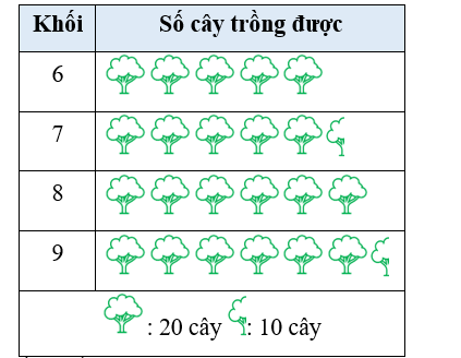 Biểu đồ dưới đây cho biết số cây xanh được trồng được của một Trường THCS trong đợt phát động trồng cây xanh đầu năm.