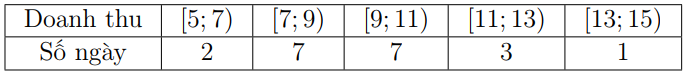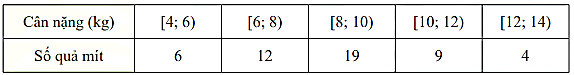 Xét mẫu số liệu ghép nhóm cho bởi bảng sau