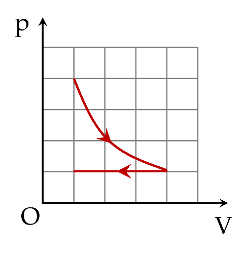 Đồ thị mô tả quá trình biến đổi đẳng nhiệt sau đó nén đẳng áp của một lượng khí xác định.