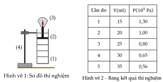 Trình tự thí nghiệm: dùng tay ấn từ từ pit-tông xuống, đọc số liệu trên áp kế và ghi lại ở Bảng kết quả thí nghiệm. Lặp lại thao tác.