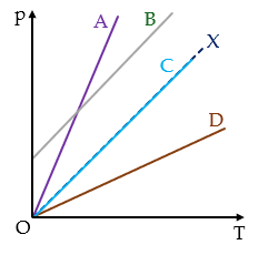 Đường nét đứt \(X\) biểu diễn sự thay đổi áp suất \(p\) theo nhiệt độ tuyệt đối \(T\) của \(1\,mol\) khí lý tưởng trong bình kín có thể tích cố định. Ta thấy đường \(X\) có dạng một đường thẳng đi qua gốc tọa độ \(O\) đây là quá trình đẳng tích. Trong quá trình đẳng tích của một lượng khí nhất định, áp suất tỉ lệ thuận với nhiệt độ tuyệt đối.