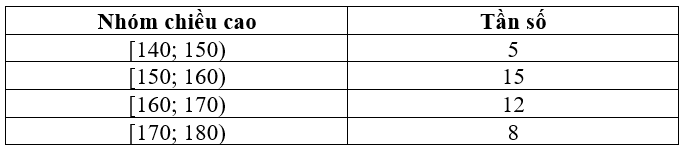 Từ bảng tần số ghép nhóm, nhóm chiều cao \([170;180)\) có tần số là 8