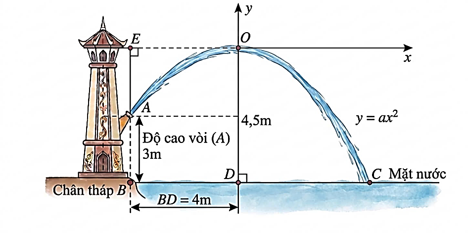 Vòi nước đặt ở độ cao 3m nên có tung độ:\({y_A} = 3 - 4,5 = - 1,5\).