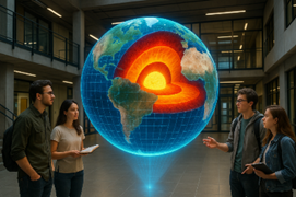 Để giúp sinh viên ngành Vật lí địa cầu hiểu rõ các tầng vật chất bên trong Trái Đất, một trường Đại học đã sử dụng công nghệ Hologram để tạo ra một quả cầu giả lập có phương trình \(\left( S \right):{\left( {x - 4} \right)^2} + {\left( {y - 1} \right)^2} + {z^2} = 25\), trong một hệ trục tọa độ Oxyz có sẵn, đơn vị trên mỗi trục là mét. Các sinh viên có thể đi dọc theo con đường thuộc mặt phẳng \(\left( P \right):2x + 2y - z - 3 = 0\) để có thể quan sát quả cầu 3D này dưới nhiều góc độ khác nhau, biết tọa độ điểm \(E\left( {0\,;\,\, - 1\,;\,\, - 5} \right)\).