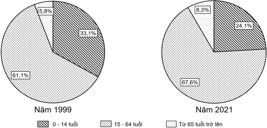 Tỉ lệ nhóm tuổi từ 65 tuổi trở lên tăng nhiều hơn nhóm từ 15 đến 64 tuổi.