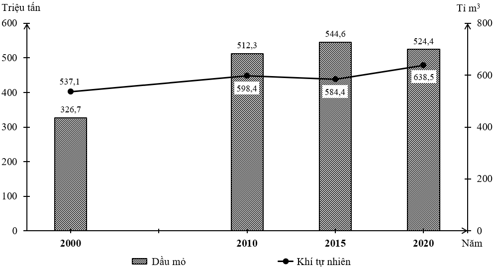 Sản lượng dầu mỏ xu hướng tăng nhanh hơn sản lượng khí tự nhiên.