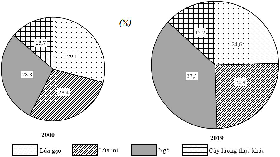 Cây ngô tăng tỉ trọng; cây lúa gạo và cây lúa mì giảm tỉ trọng.