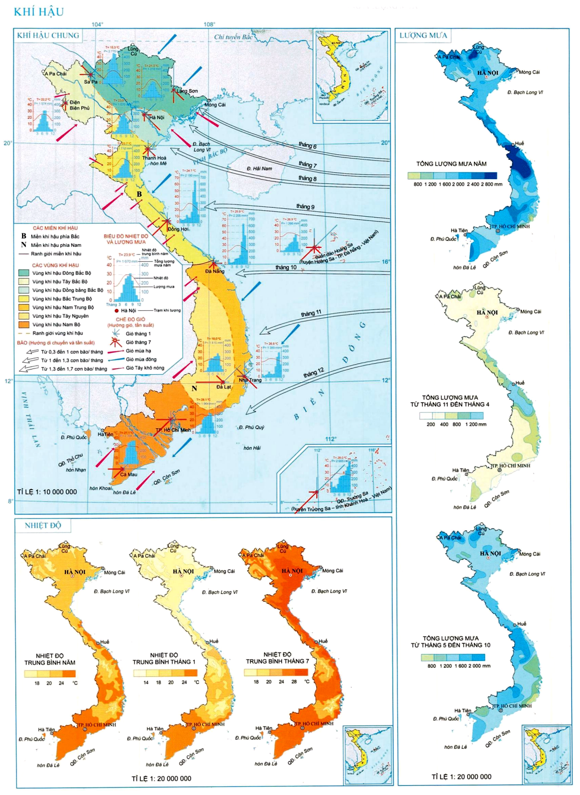 B. gió hướng đông bắc, gió mùa Tây Nam, dải hội tụ, bão và áp thấp nhiệt đới.