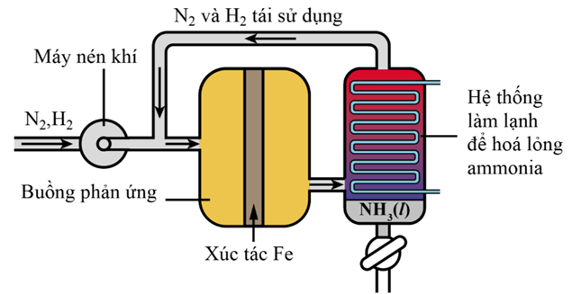 Sơ đồ nguyên tắc của quá trình Haber tổng hợp ammonia được thể hiện trong hình dưới đây: