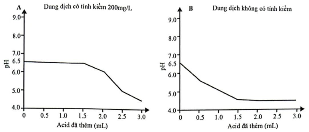 Hình 1: Ảnh hưởng của tính kiềm lên pH của dung dịch khi thêm acid.