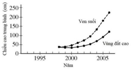 Trong khu rừng, cây dương có thể sống ở vùng đất cao khá bằng phẳng và ở vùng ven bờ suối có địa hình dốc và cây cối rậm rạp. Nai sừng tấm sử dụng cây dương làm thức ăn, người ta theo dõi tỉ lệ % cây dương bị ăn lá (Hình 2) và chiều cao cây ở 2 khu vực đất cao và ven suối (Hình 3).