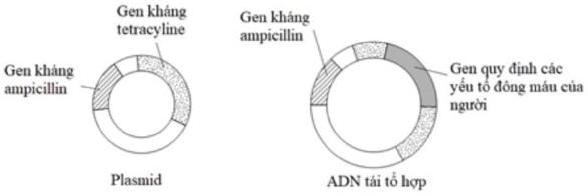 Trong quy trình chuyển gene, plasmid và DNA của người được cắt bằng enzyme cắt giới hạn, sau đó nối lại bằng enzyme nối tạo ra DNA tái tổ hợp. Tiếp theo, chuyển hỗn hợp vào vi khuẩn nhận.