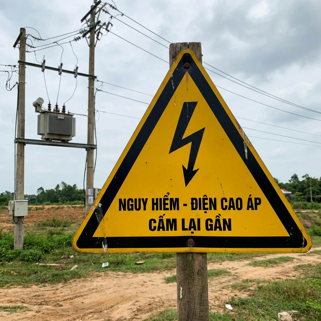 Theo quy định về biển báo an toàn: Hình tam giác, nền vàng, viền và hình đen là biển báo Nguy hiểm/Cảnh báo.