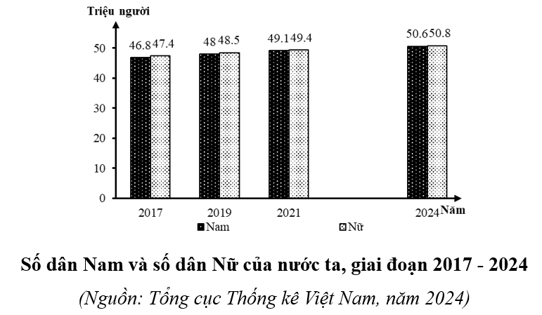 Năm 2024 so với năm 2017, số dân Nữ tăng nhanh hơn số dân Nam.