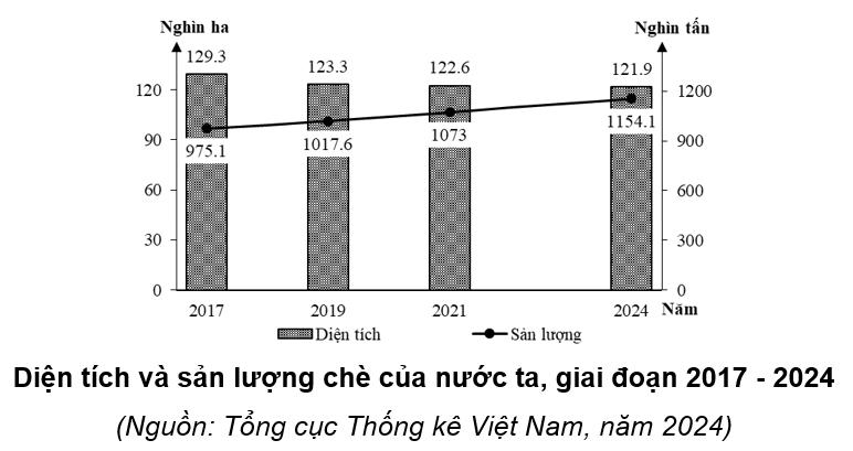 Diện tích chè tăng liên tục trong giai đoạn 2017 - 2024.