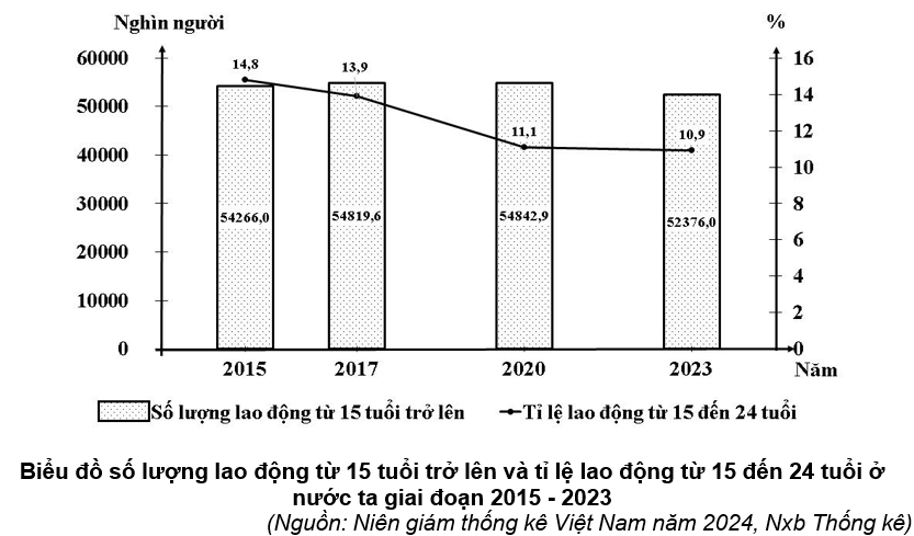 Năm 2023 so với năm 2015, tỉ lệ lao động từ 15 đến 24 tuổi tăng 3,9%.