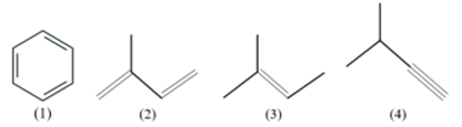 Có 3 chất thuộc loại hydrocarbon không no là (2)(3)(4). Chất (1) thuộc loại hydrocarbon thơm.