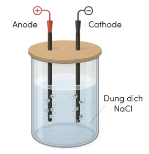 Tại điện cực cathode xảy ra quá trình oxi hoá nước: H2O + 2e → 2OH- + H2