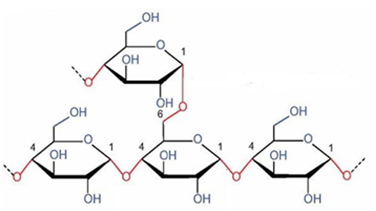 Cấu tạo của đoạn mạch trên có các liên kết β-1,4-glycoside và β-1,6-glycoside.