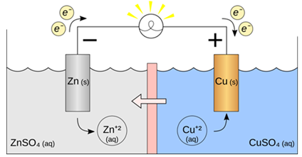 Phản ứng chung xảy ra trong pin điện là: Zn(s) + Cu2+(aq) → Zn2+(aq) + Cu(s).