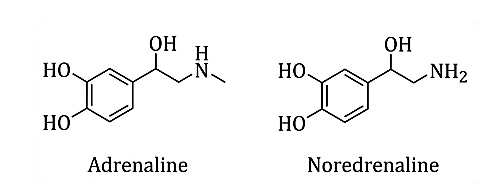 Adrenaline và Noradrenaline đều có nhóm chức alcohol cùng bậc với nhóm chức amine.