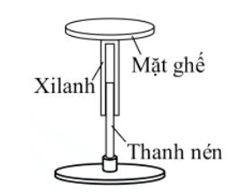 Hình bên là mô hình của một chiếc ghế xoay được nâng hạ bằng khí thông qua chuyển động lên xuống của xilanh nối với mặt ghế, thanh nén khí cố định trên đế bịt kín một lượng khí lí tưởng trong xilanh. Bỏ qua ma sát giữa thanh nén và xilanh. Tổng khối lượng của mặt ghế và xilanh là 5 kg , tiết diện của thanh nén là \(25\;{\rm{c}}{{\rm{m}}^2}\). Một học sinh nặng 35 kg ngồi lên ghế (hai chân để lơ lửng không chạm sàn) thì ghế hạ xuống 12 cm khi ổn định. Coi nhiệt độ của khí trong xilanh không đổi, áp suất khí quyển là \({10^5}\;{\rm{Pa}}\) và \({\rm{g}} = 10\;{\rm{m}}/{{\rm{s}}^2}\).