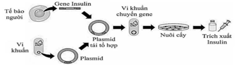 Gene mã hoá insulin được đưa vào plasmid nhờ một số enzyme giới hạn và enzyme ligase.