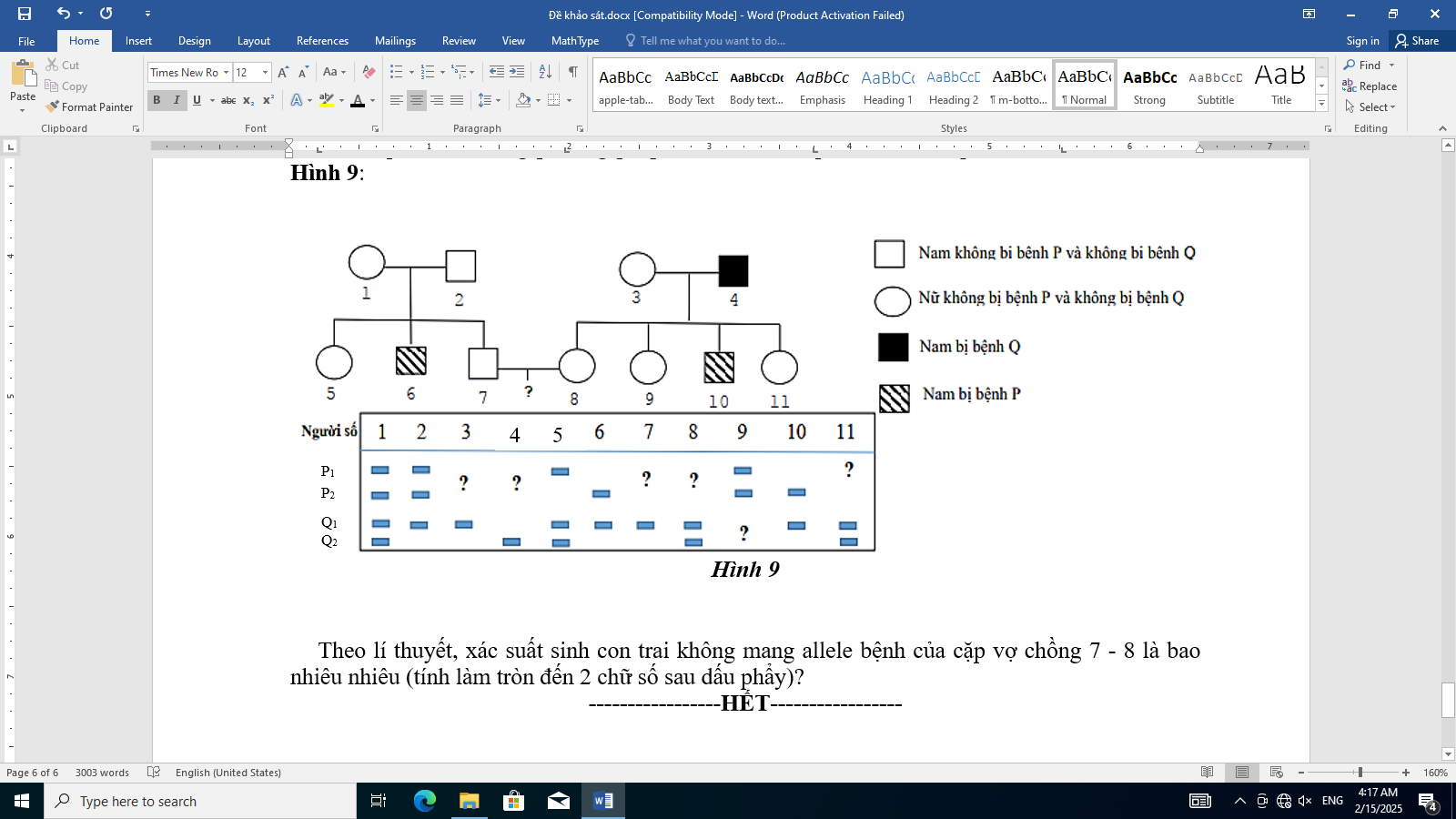 Bệnh Q do gene lặn trên NST giới tính X không allele trên Y qui định.