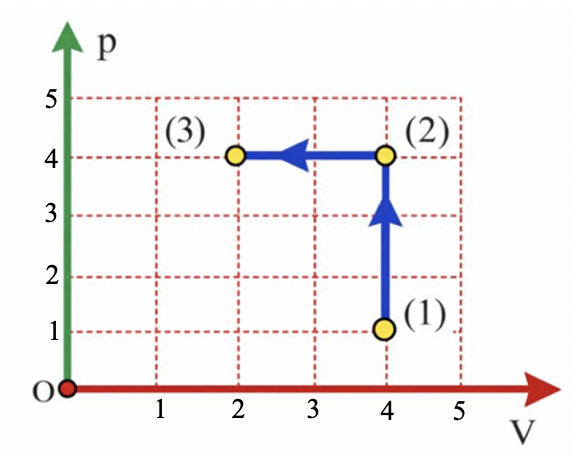 Cùng 1 lượng khí xác định: \(\frac{{{{\rm{p}}_1}{{\rm{V}}_1}}}{{{\rm{\;}}{{\rm{T}}_1}}} = \frac{{{{\rm{p}}_3}{{\rm{V}}_3}}}{{{\rm{\;}}{{\rm{T}}_3}}} \Rightarrow {\rm{\;}}{{\rm{T}}_3} = \frac{{{{\rm{p}}_3}}}{{{{\rm{p}}_1}}}.\frac{{{\rm{\;}}{{\rm{V}}_3}}}{{{\rm{\;}}{{\rm{V}}_1}}}.{{\rm{T}}_1} = 4.\frac{2}{4}.300 = 600{\rm{\;K}}\)