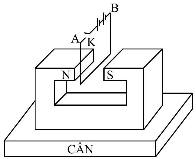 Sau khi đóng khóa K, số chỉ của cân giảm đi.