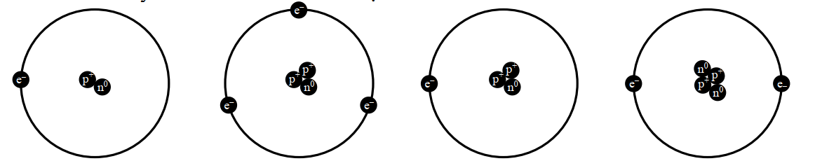 * Hình 4: số \({\rm{p}} = 2 = \) số \({\rm{e}} \Rightarrow \) hạt trung hòa điện.