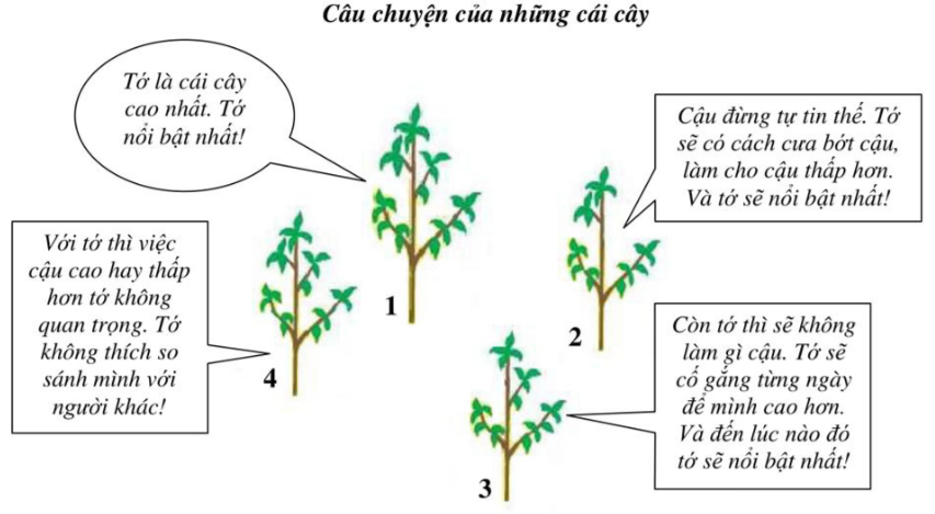 Lời nói của cây 4 thể hiện thái độ không thích so sánh với mình với người khác, coi mình là một cá nhân độc lập, riêng biệt. |
