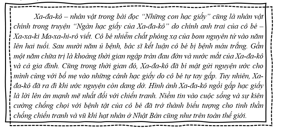 C. Giới thiệu về nhân vật Xa-đa-kô.