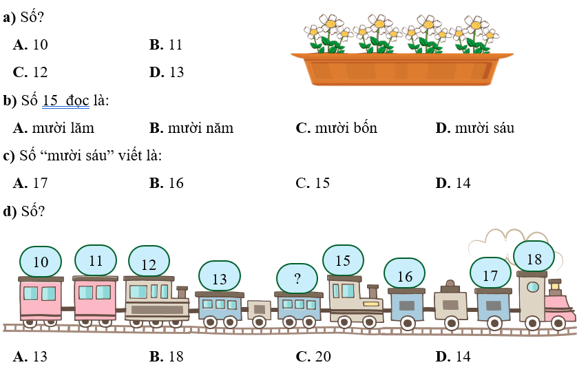 15 câu trắc nghiệm Toán lớp 1 Kết nối tri thức Luyện tập chung có đáp án