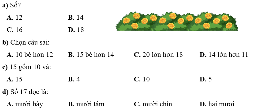 15 câu trắc nghiệm Toán lớp 1 Kết nối tri thức Luyện tập chung có đáp án