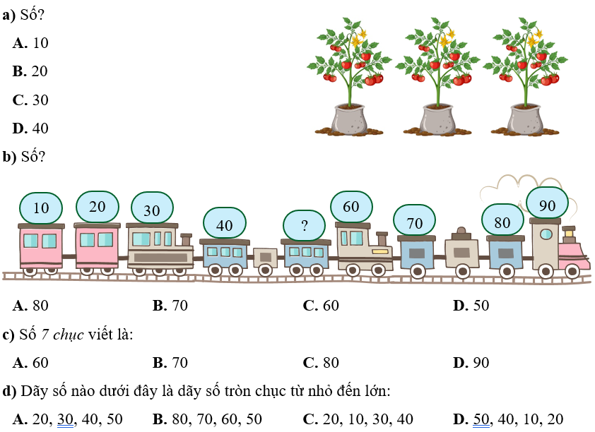 15 câu trắc nghiệm Toán lớp 1 Kết nối tri thức Bảng các số từ 1 đến 100 có đáp án