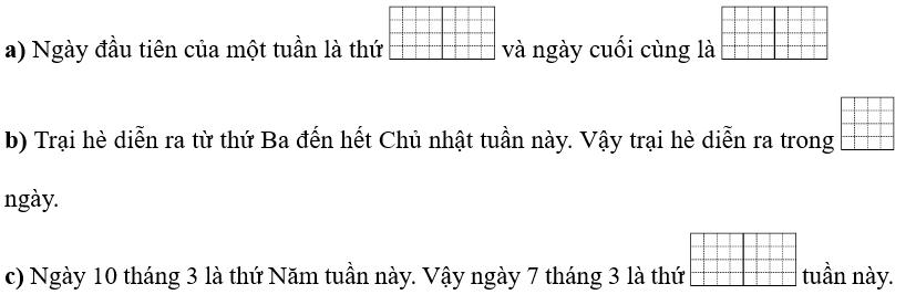 c) Ngày 10 tháng 3 là thứ Năm tuần này. Vậy ngày 7 tháng 3 là thứ hai tuần này.